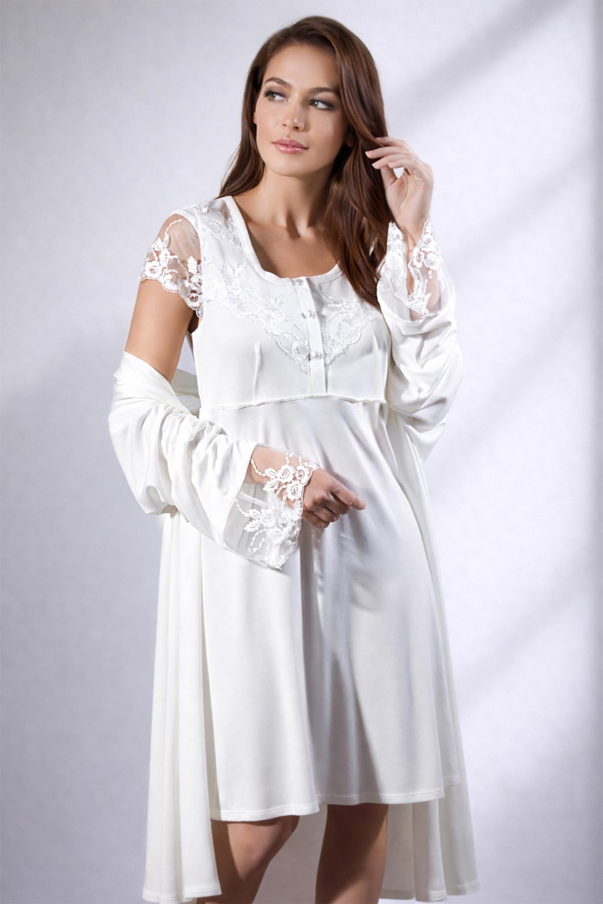 Ayyıldız 3927 Ekru Lohusa Gecelik Sabahlık Takım