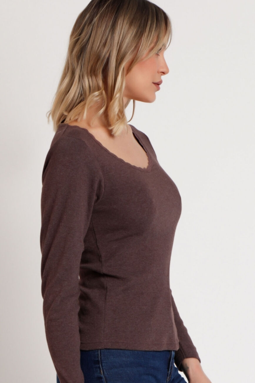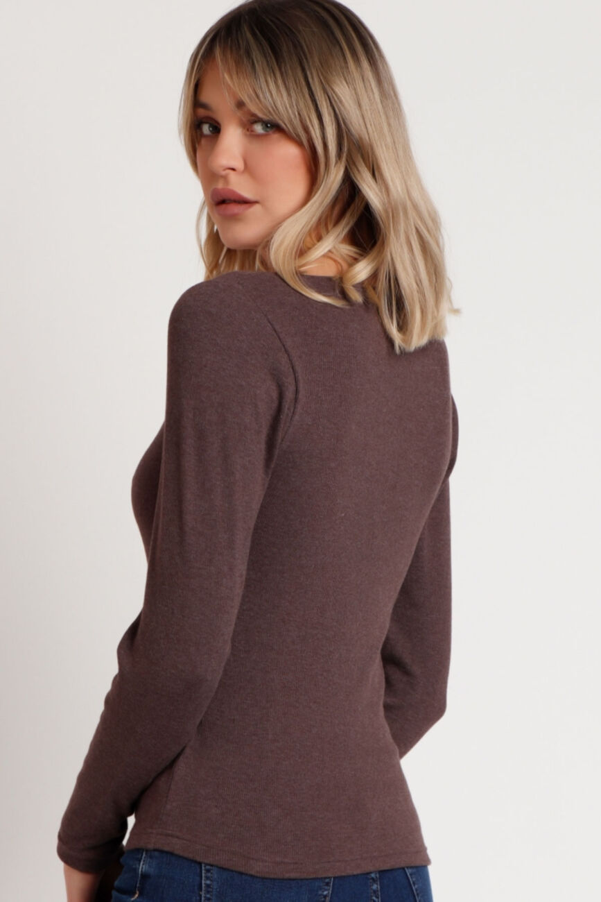 43562 Ribana Kahverengi Uzun Kollu T-shirt