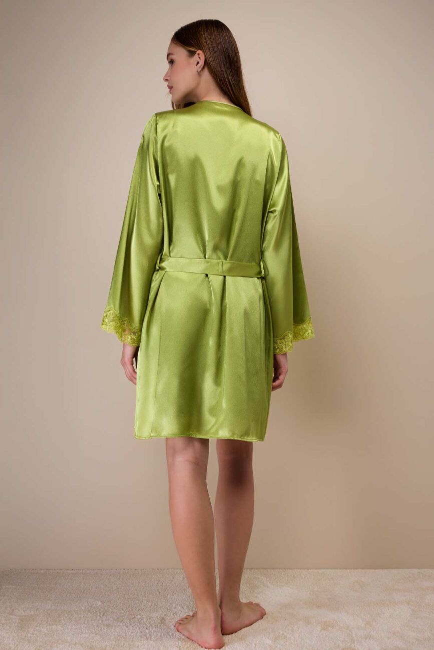 Ayyıldız 3978 Yeşil Saten Gecelik Sabahlık Takım