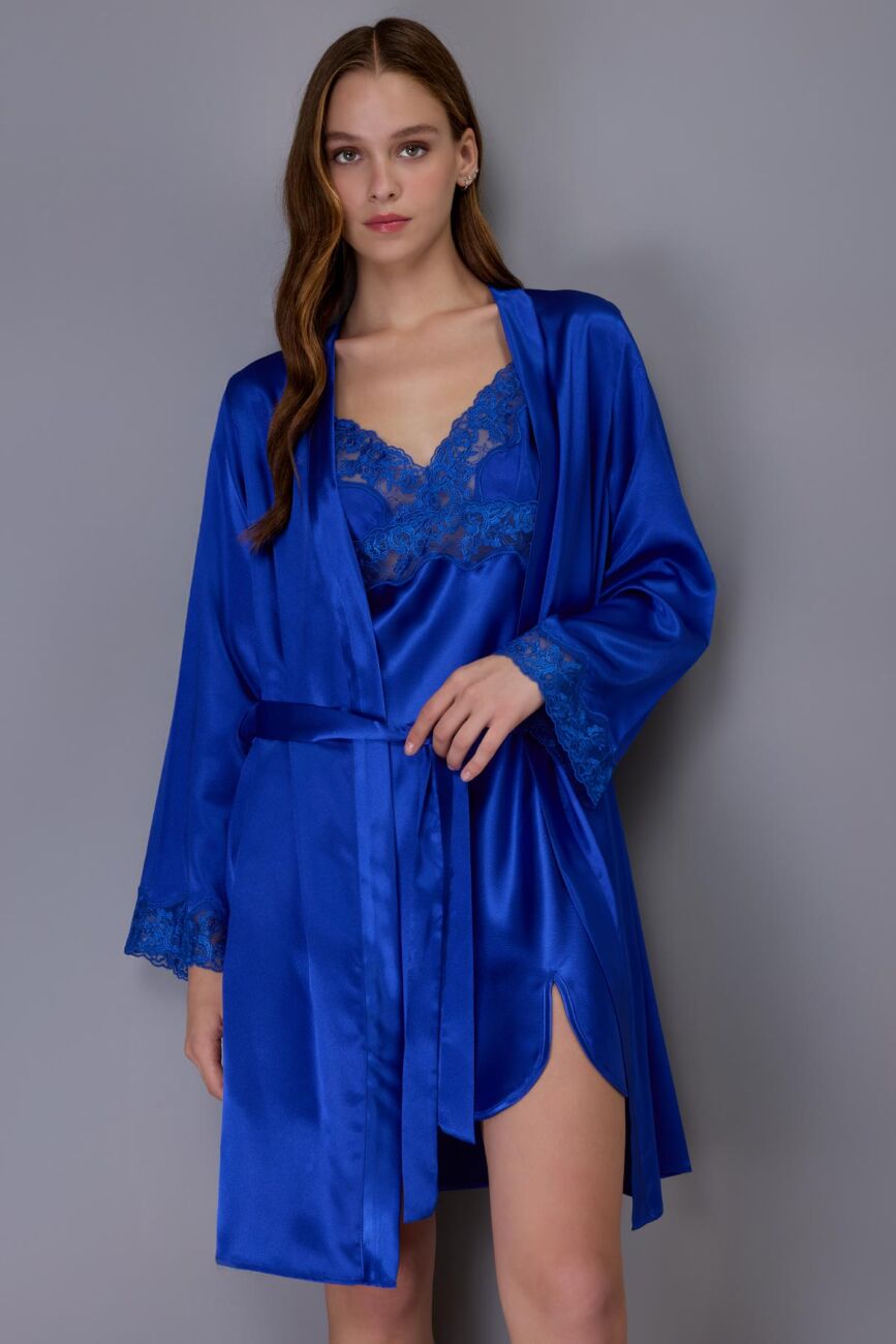 Ayyıldız 3978 Saks Saten Gecelik Sabahlık Takım