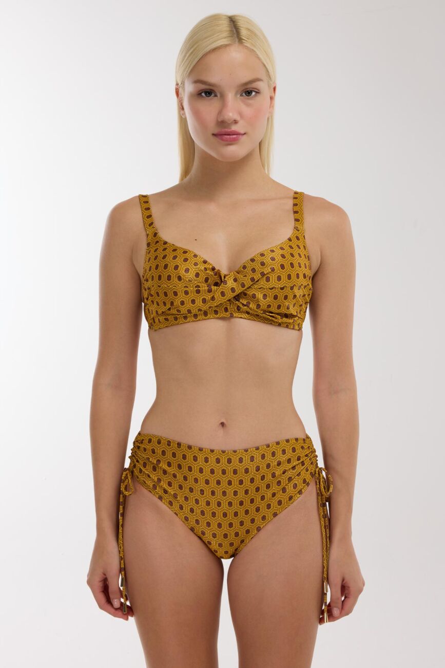 - Yanları büzgülü ve fiyonk bağlamalı yüksek bel bikini altı