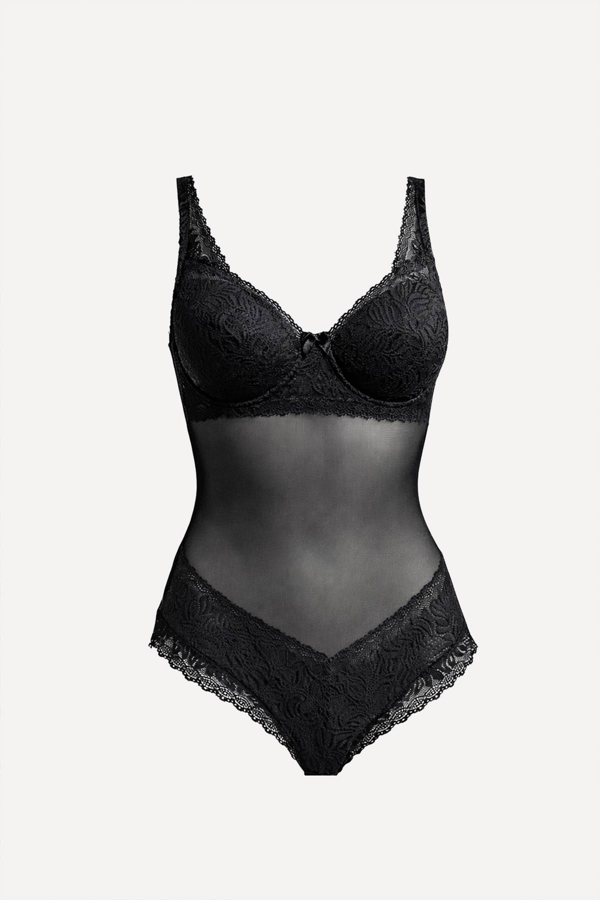 - Ayarlanabilir askılı - Balenli (telli) - İnce sünger kaplı - Göbek kısmı tül - Alt kısmı dantel işlemeli - Sırt kısmı V kesimli - Alttan kancalı body - İç kısmındaki ağ %100 pamuk - %82 Polyamid %18 Elastan - Hijyen sebebi ile iade ve değişim yapılmamaktadır. - Türkiye' de üretilmiştir